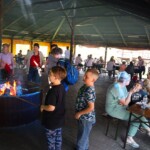 - ognisko z pieczeniem kiełbasek i ziemniaków (kiełbaska, ziemniaki, pieczywo, ketchup, musztarda, herbata)